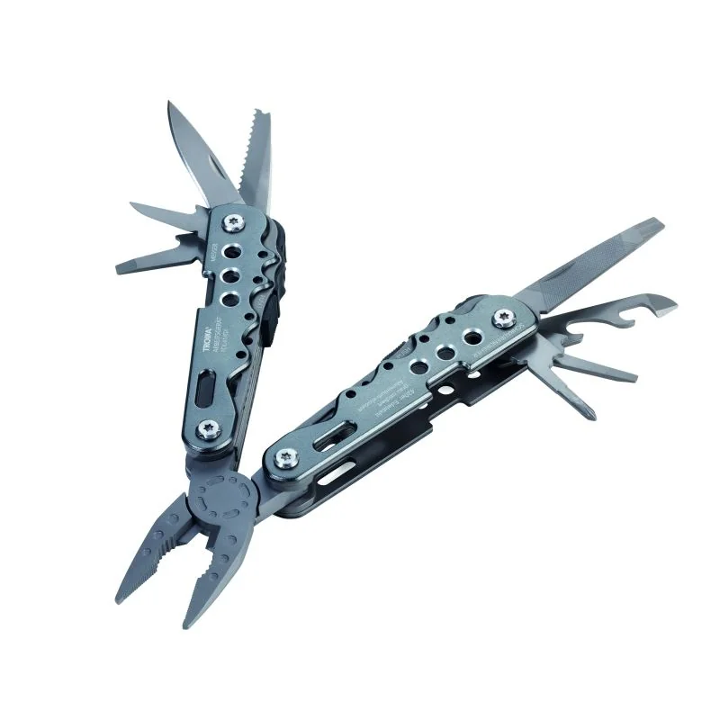 Apresentamos a Ferramenta de 10 Funções Troika, o seu essencial para qualquer aventura ao ar livre ou projeto DIY. Com um leque de ferramentas indispensáveis, desde alicates a vários tipos de chaves de fenda, este instrumento não é apenas prático mas também duradouro, graças à sua construção em aço inoxidável 420 e alumínio anodizado. Seja para abrir uma garrafa ou serrar madeira, o Troika está desenhado para ser o seu mini oficina de ferramentas portátil. Com sua mola integrada e função de travamento, cada ferramenta é segura para uso, tornando este gadget multifuncional uma verdadeira mais-valia para qualquer faz-tudo ou entusiasta de DIY.