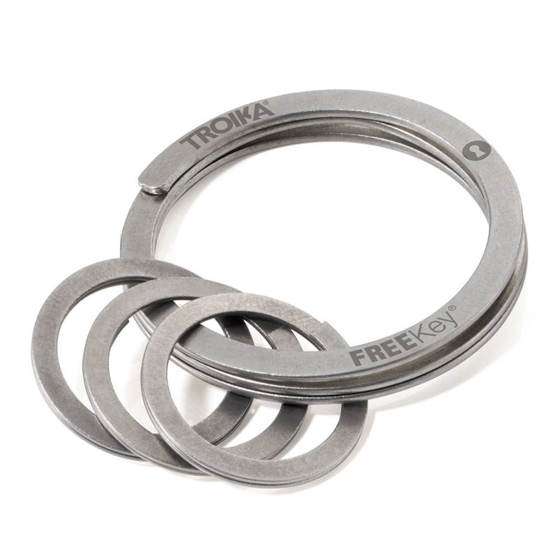 Freekey keyring system made of sand blasted stainless steel, just press/pinch and the leverage helps open it meaning easy to slip the keys on and off when needed Swedish design